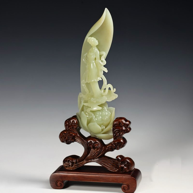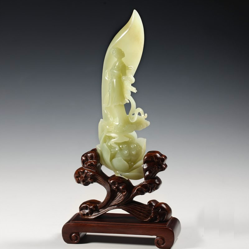 黄玉摆件-荷仙子