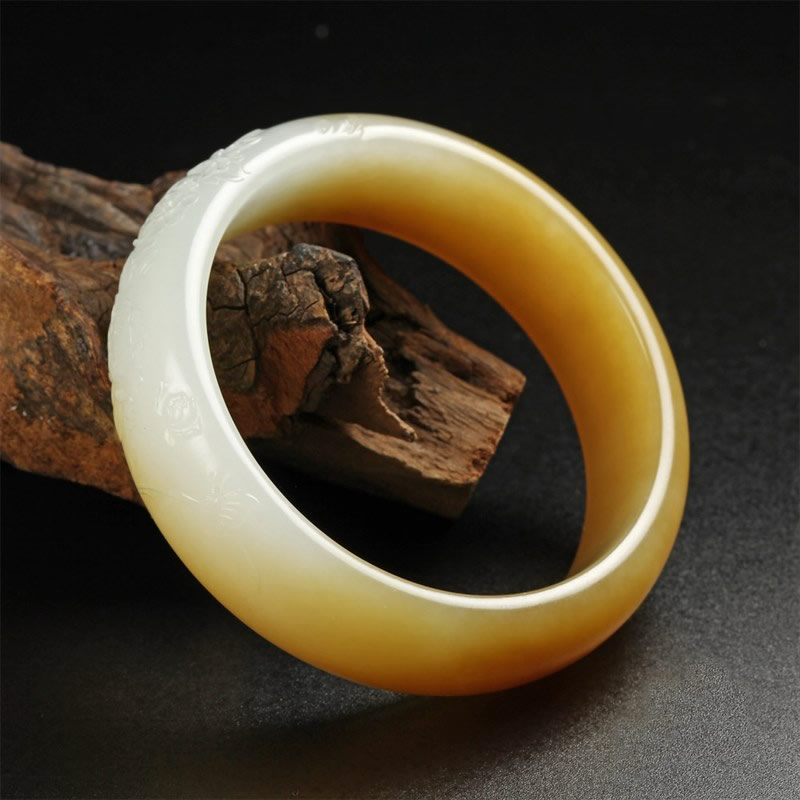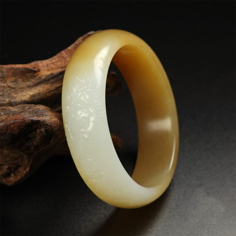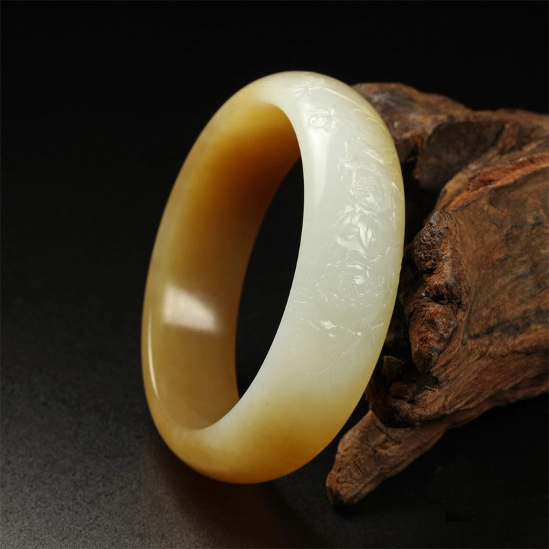 糖白玉巧雕手镯-花开富贵