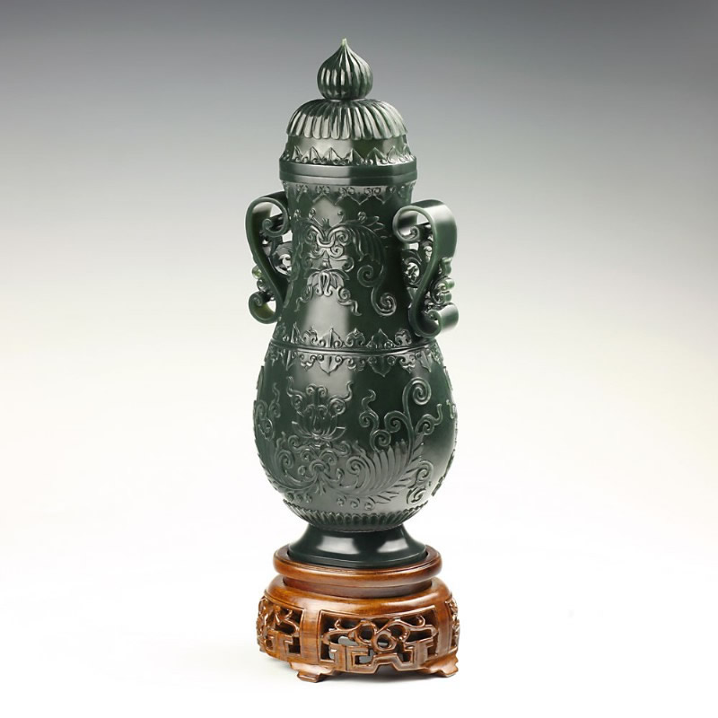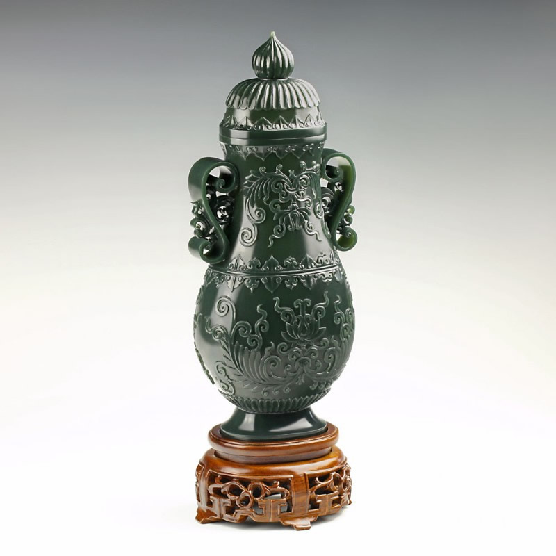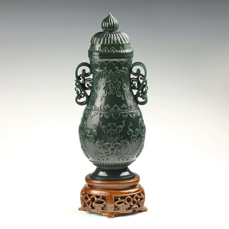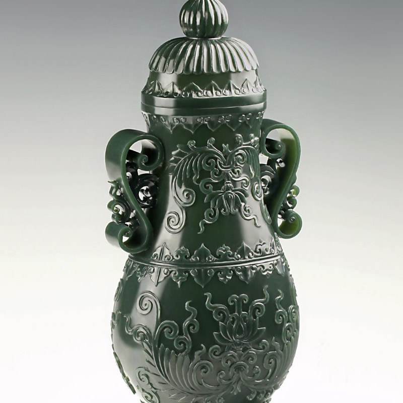 青玉-缠枝花卉薄胎瓶