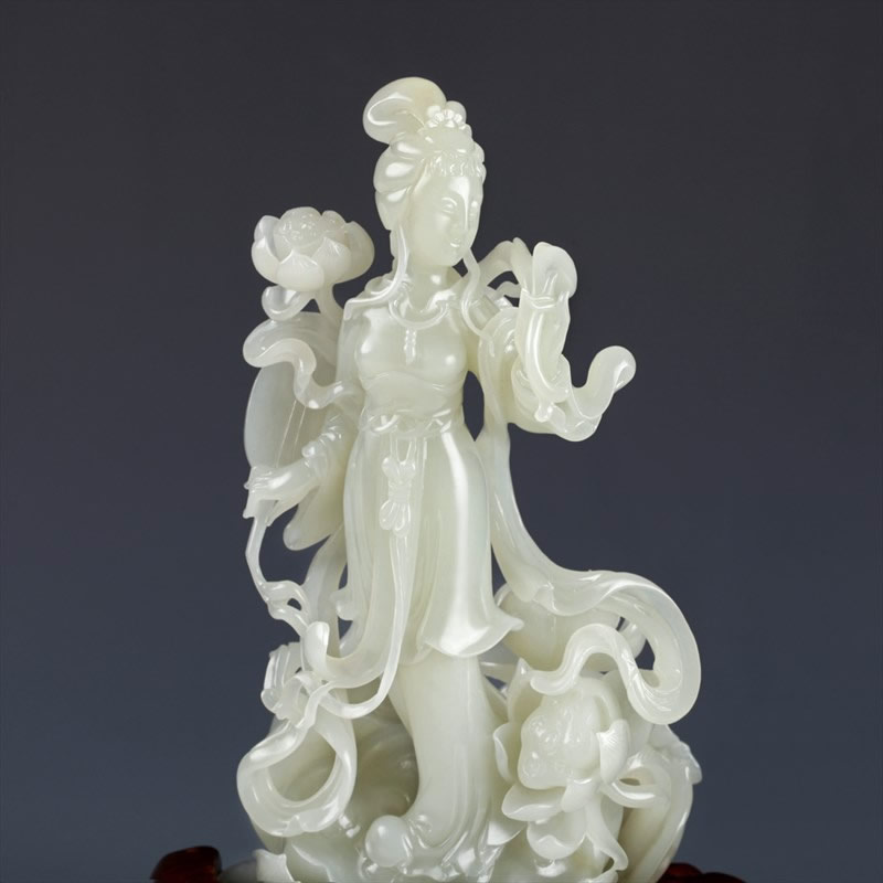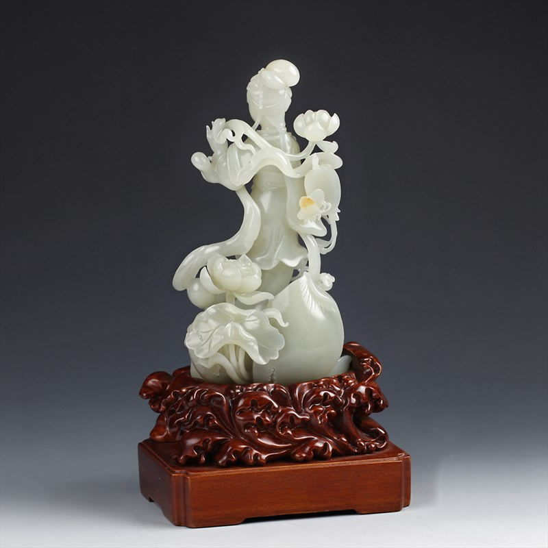 白玉子料摆件-采莲仕女