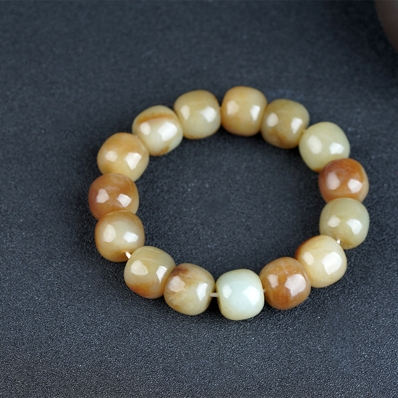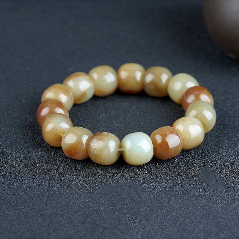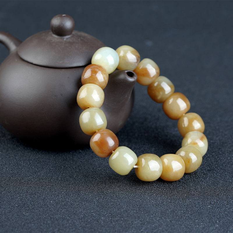 和田玉老型珠黄口手串